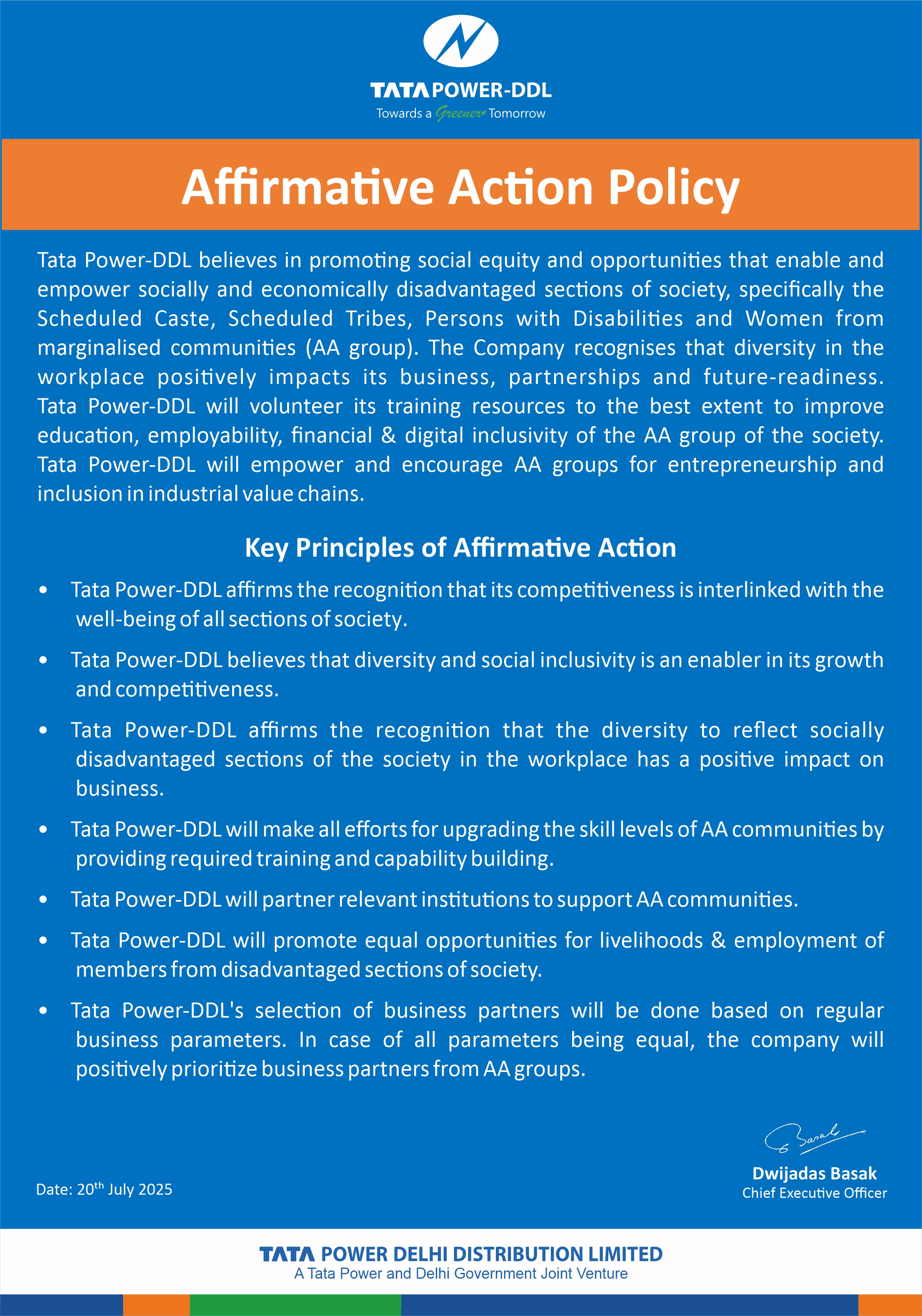 - Tata Power-DDL Equal Opportunity Policy for Specially-Abled Download
