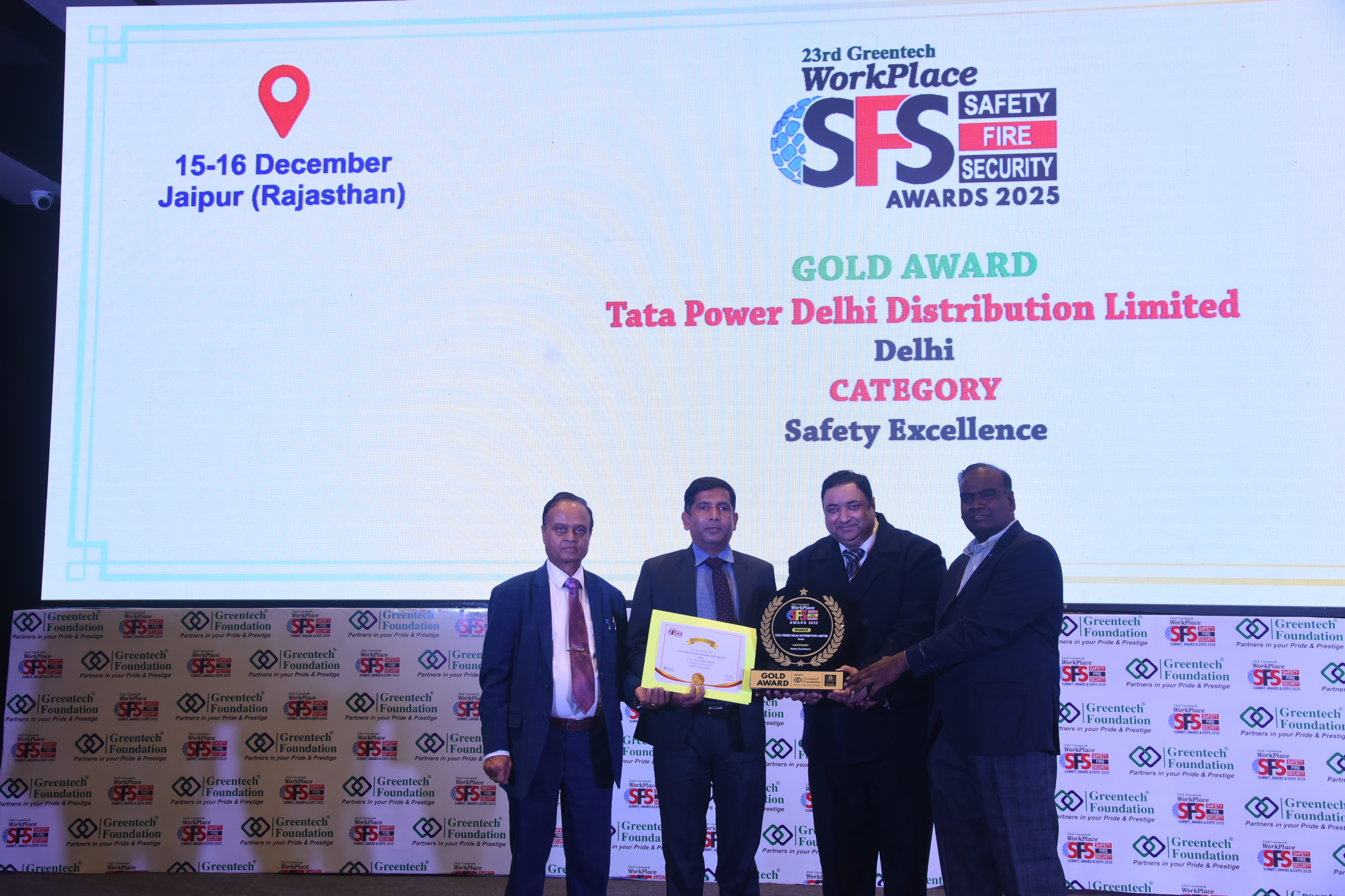 Tata Power-DDL conferred with Safety Excellence Award by the Greentech Foundation for effective implementation of best practices in Occupational Health and Safety at the 23rd Annual Greentech Safety, Fire and Security Awards & Summit 2025.